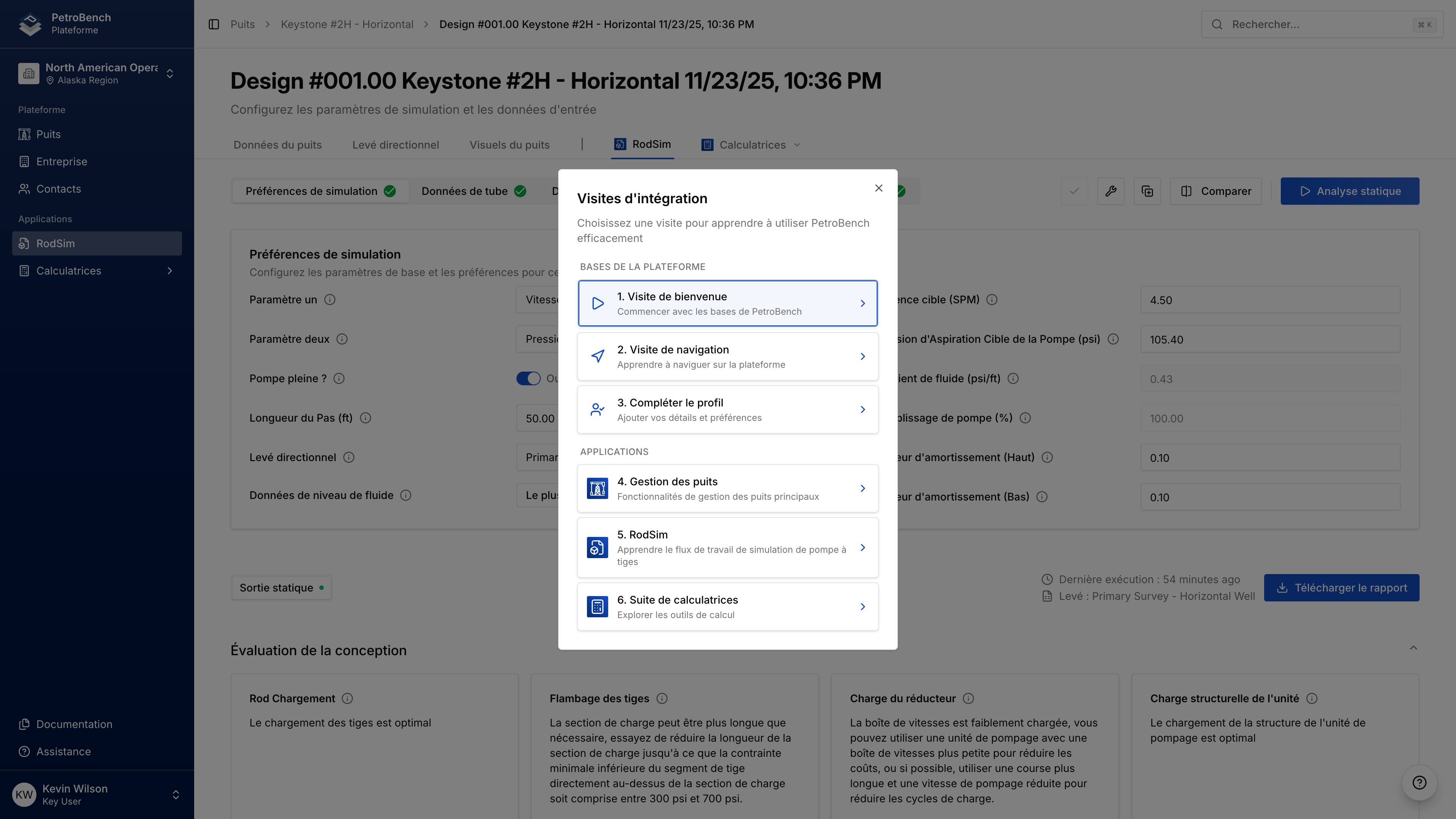 PetroBench inclut des visites interactives qui vous guident a travers les fonctionnalites cles. Les visites mettent en surbrillance les elements de l'interface et expliquent ce qu'ils font.